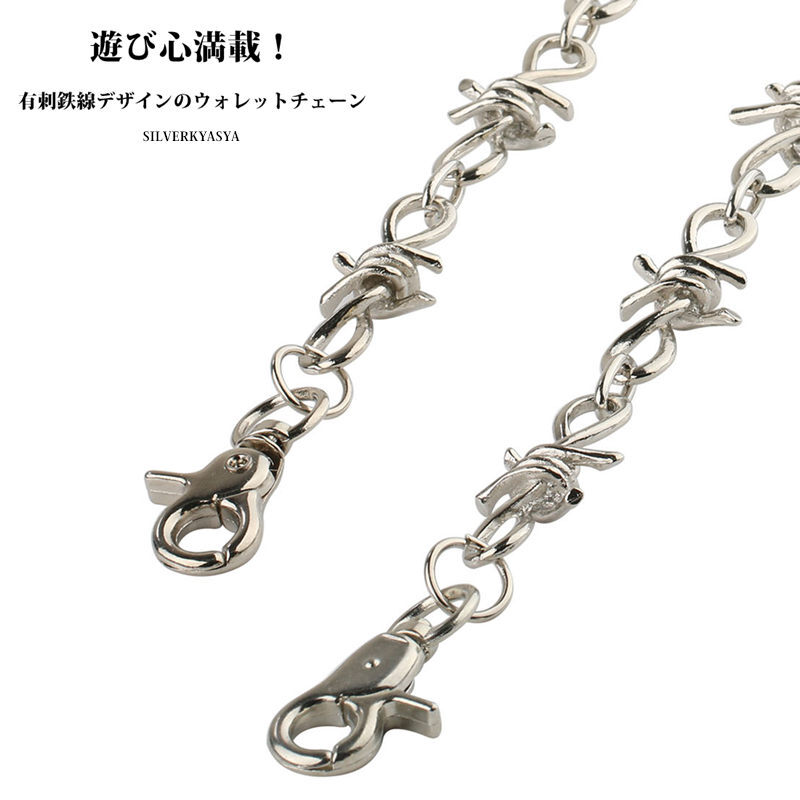 - 有刺鉄線のアクセ? 遊び心満載ダブルクリップ オニハリバーブ ウォレットチェーン シルバー 有刺鉄線 チェーン 太幅 存在感