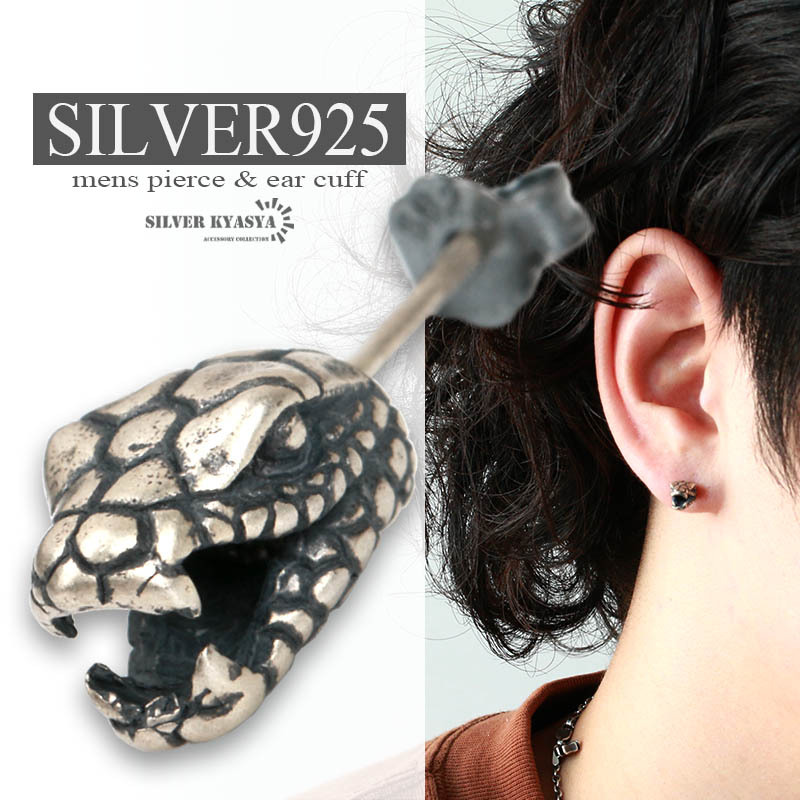 - スネークピアス シルバー925 18G スタッドピアス モチーフ アレルギー対応 アニマル 片耳用