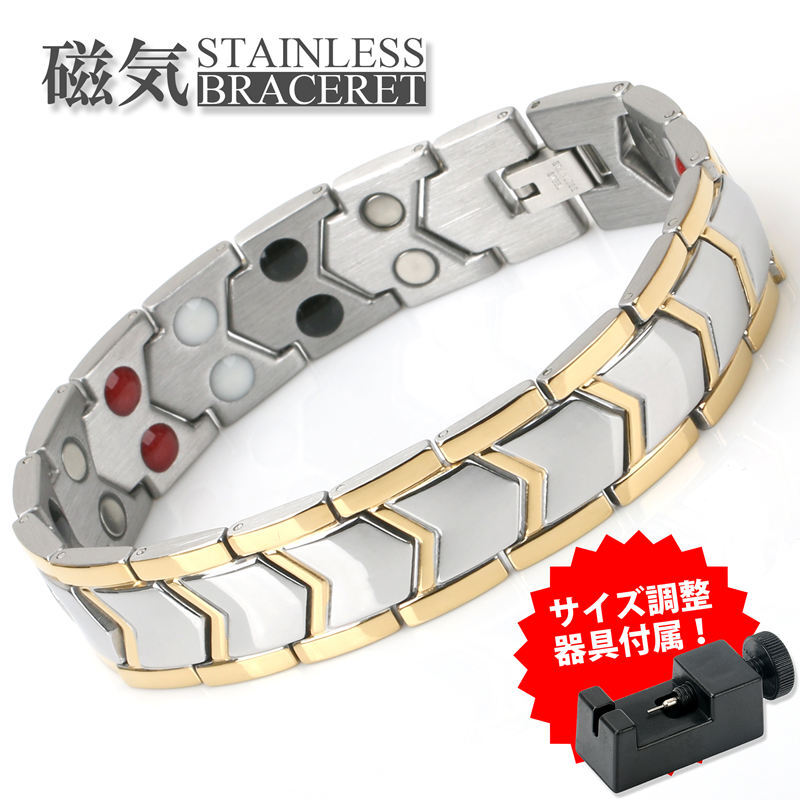 - 磁気ブレスレット メンズ ステンレス ゴールド ブレスレット 金属アレルギー対応 ビーズ 磁力 磁石 316L 調整器具付属