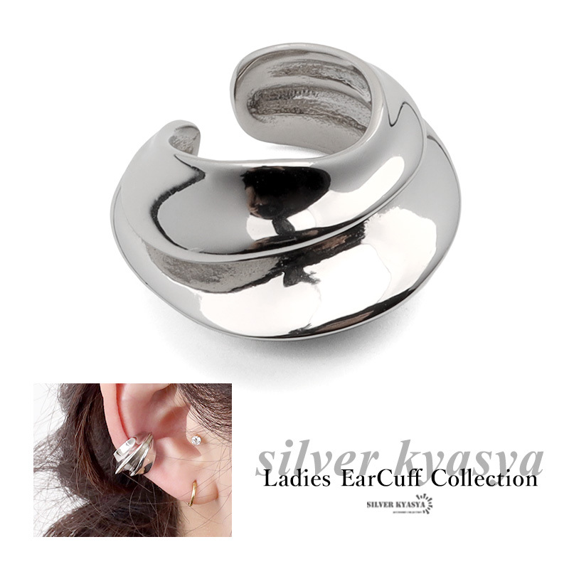 - イヤーカフ 金属アレルギー シルバー925 18KGP ゆがみ シワ ギャザー シルバー 銀 耳の穴いらない 片耳用