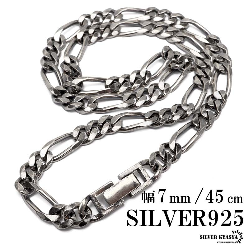 - シルバー925 チェーンネックレス 中折れ フィガロチェーンネックレス 幅7mm 45cm 喜平ネックレス 金属アレルギー対応