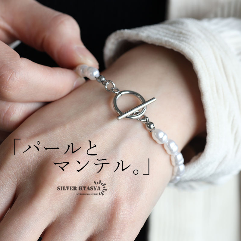 - パールブレスレット マンテル ステンレス製で安心 マンテルブレスレット パール シルバー