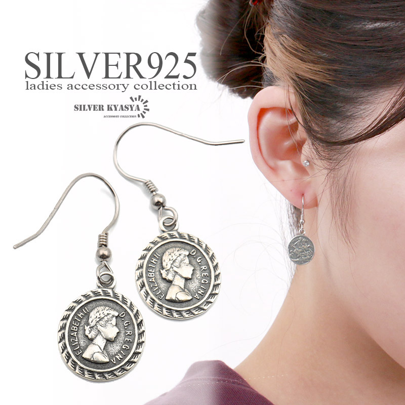 - シルバー925 Elizabeth エリザベス ドロップピアス コインピアス 金属アレルギー 2点 20G 両耳用 キャッチレス