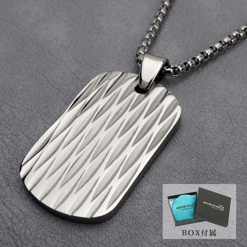 - シンプル ドッグタグネックレス 刀痕 模様 メンズネックレス シルバー プレートネックレス チェーン付き 専用BOX付属