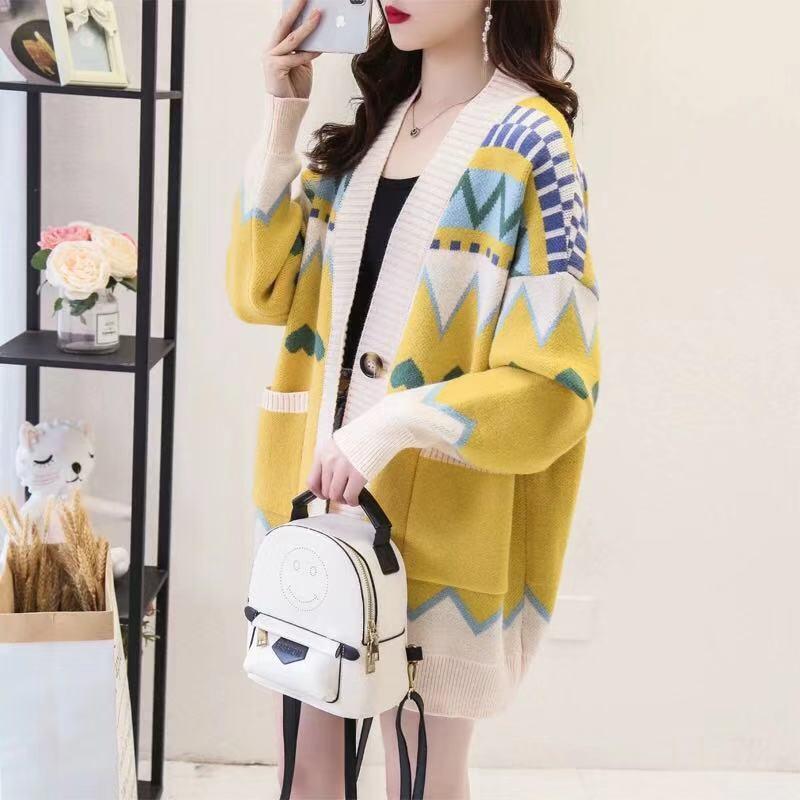 - 【イエロー★2XL】秋冬あったか 太ニット カーディガンレディース