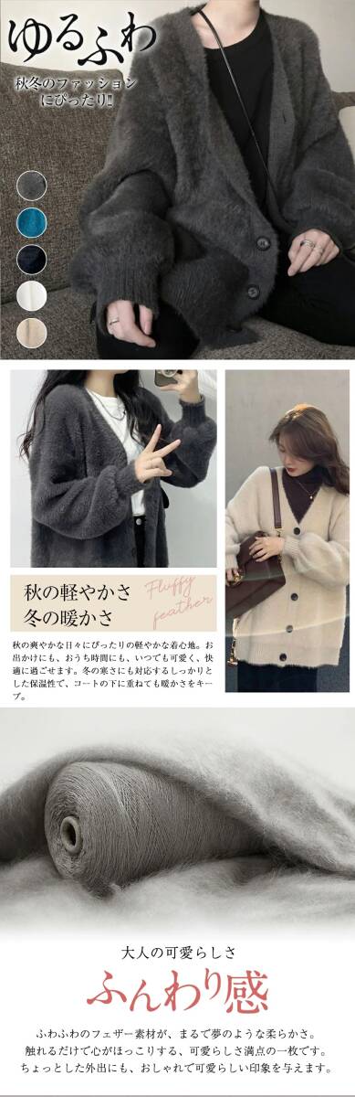 - ■ ニットカーディガン Vネック シャギーニット フェザーカーディガン オフィスカジュアル ロングカーディガン きれいめ