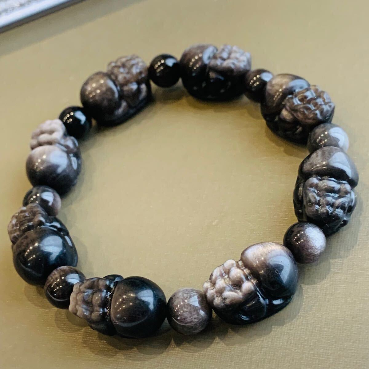 - シルバーオブシディアンブレスレット 銀曜石 貔貅 ブレスレット パワーストーン お守り 仕事運 魔除け 17cm前後