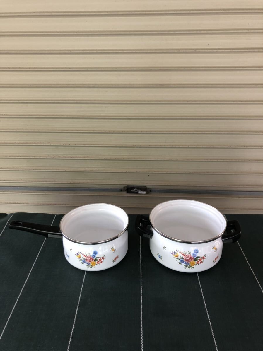 - ★象印 ホーロー 魔法瓶 中古品 昭和レトロ 調理器具 鍋 2点セット★tano