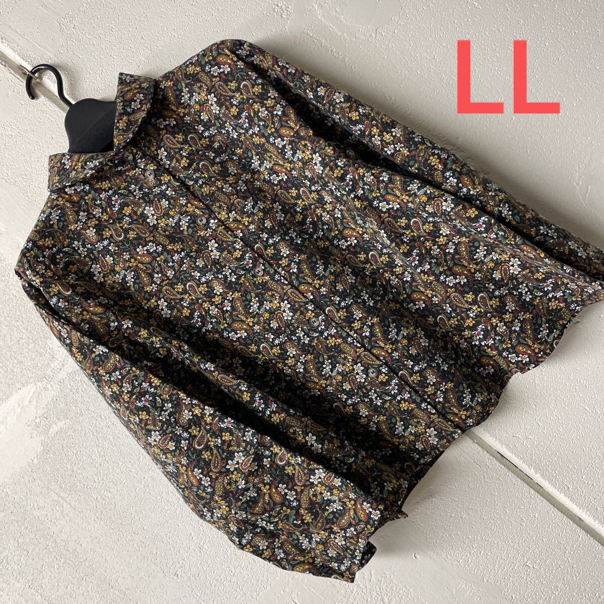 - LLサイズ綿100%ペイズリー花プリントフレアシャツブラウス