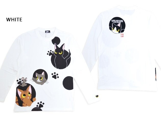 > ラミ&アール 水玉模様からこんにちわロングTシャツ◆LIN ホワイトLサイズ AL-75124 黒猫 ネコ 鼠 ネズミ ユニセックス