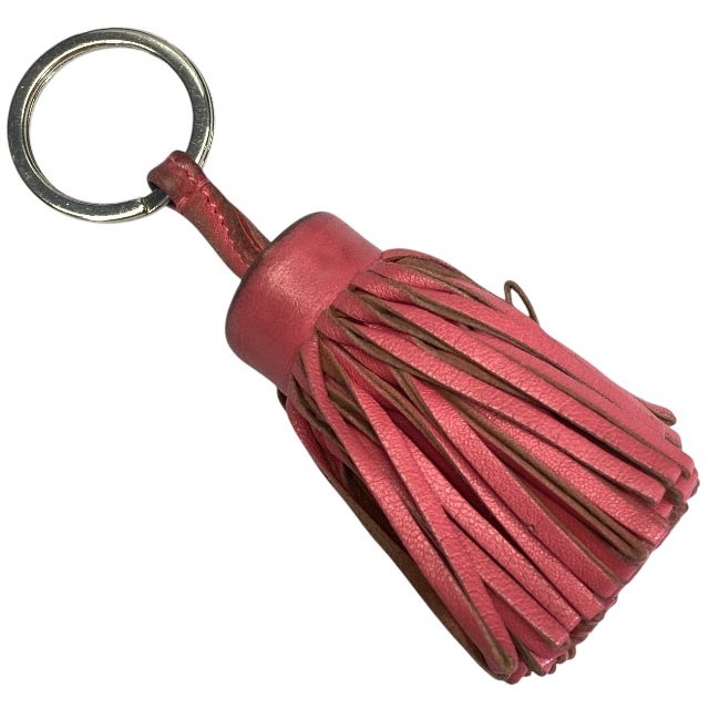 - HERMES エルメス カルメン バッグチャーム キーホルダー キーリング チャーム フリンジ レザー ピンク