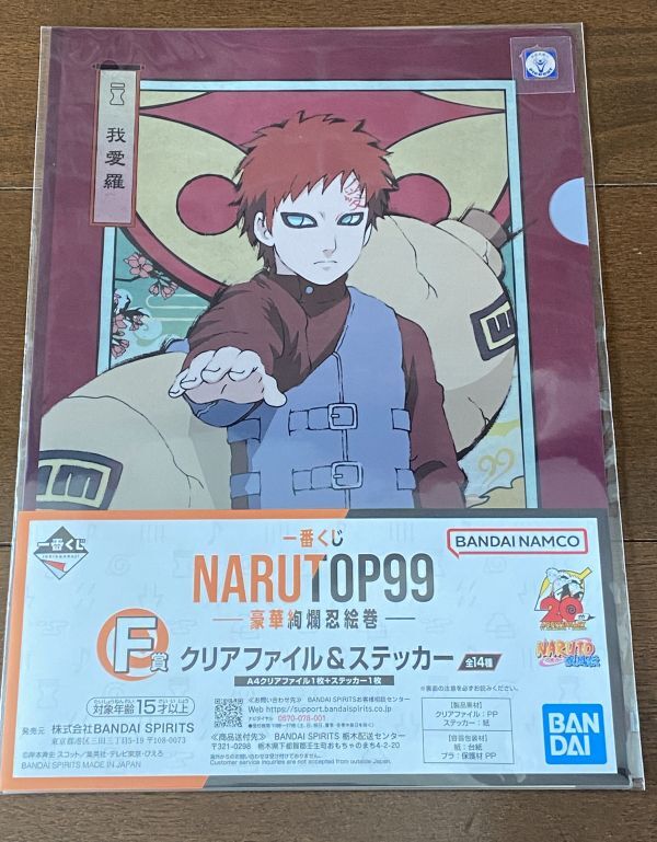 - 新品未使用 我愛羅 A4クリアファイル&ステッカー 「一番くじ NARUTOP99 -豪華絢爛忍絵巻-」 F賞 NARUTO