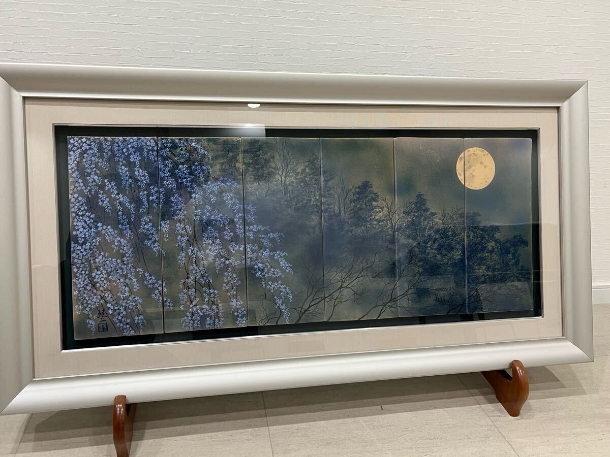 - 【真作】佐々木経ニ 陶額 6枚続き 月 花 風景画 絵画 額装 大型 約85×約33.5cm
