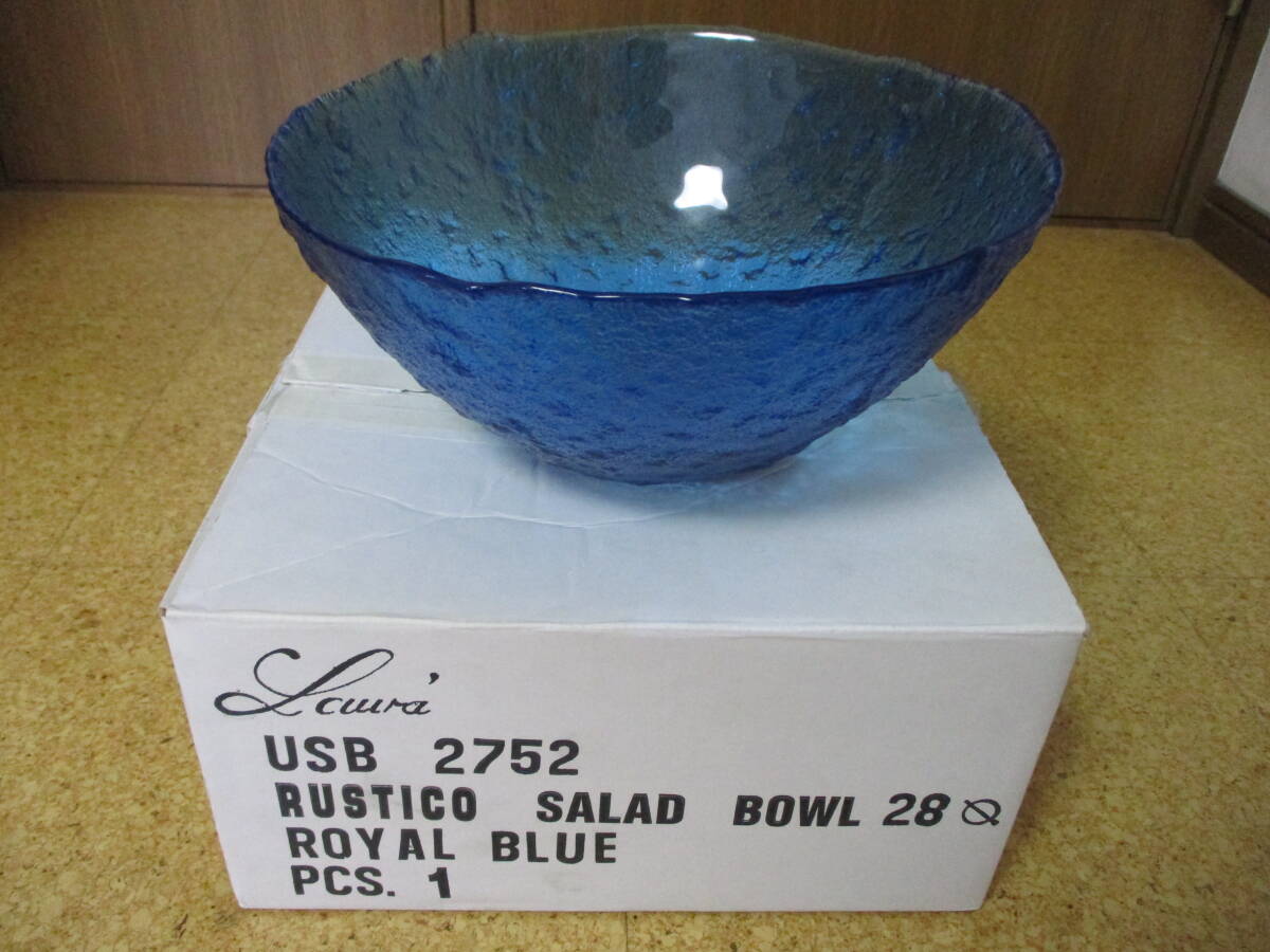 > ◎HOYA - HOYAガラス★サラダボウル ローヤル・ブルー/Made In Italy★未使用長期保管品//Royal Blue Salad Bowl 28センチ ホヤ