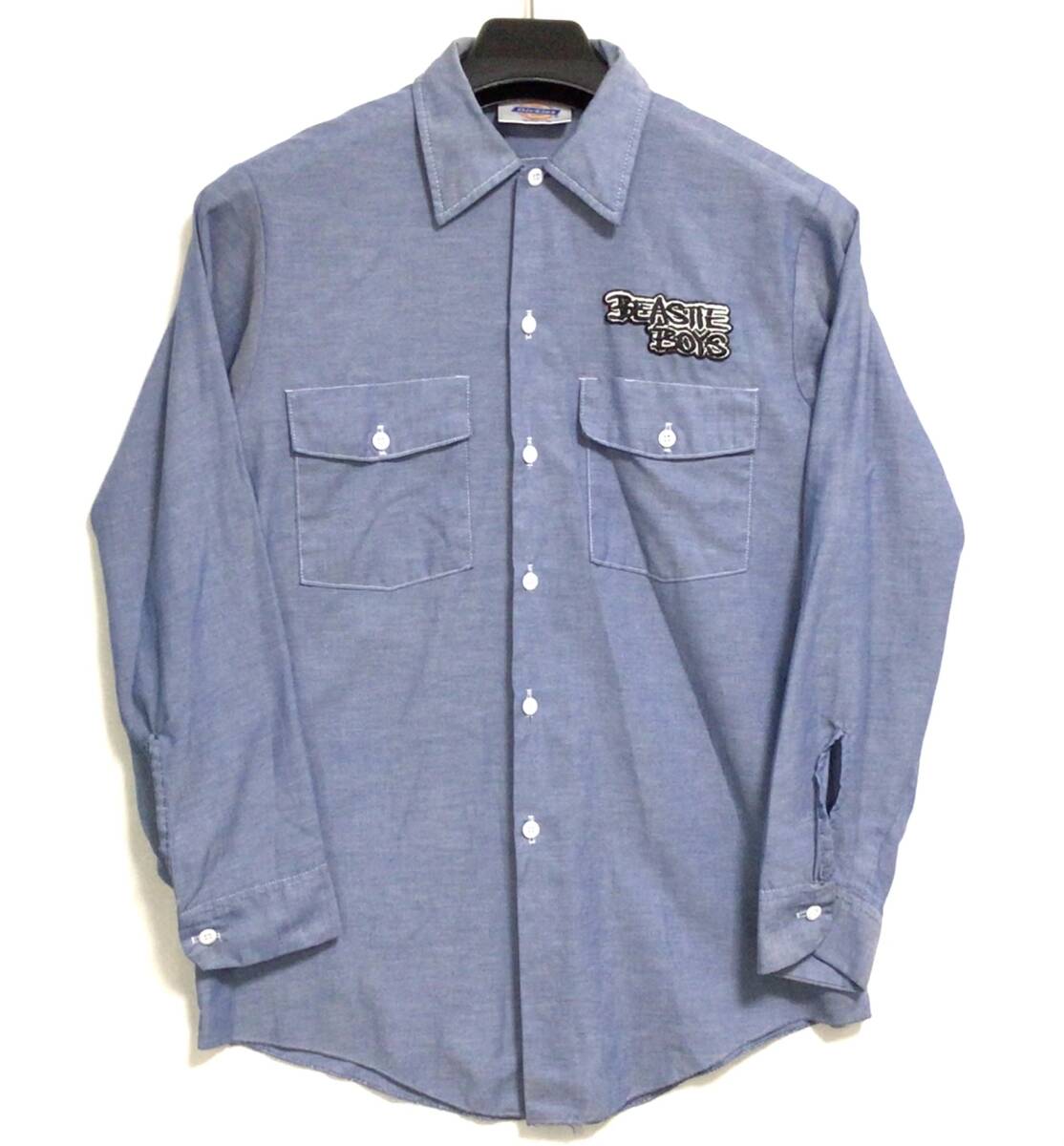 > Dickies ディッキーズ BEASTIE BOYS ワッペン付き シャンブレーシャツ 15-15 1/2 x 33 ブルー ワークシャツ RAP HIP HOP