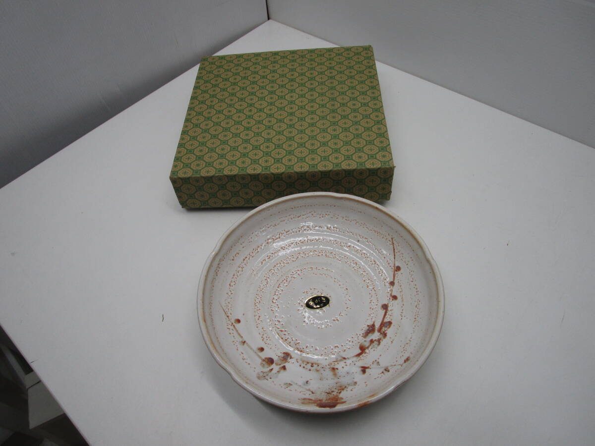 - O693★前総窯 手書き深皿 29cm ボウルプレート 陶器★未使用品