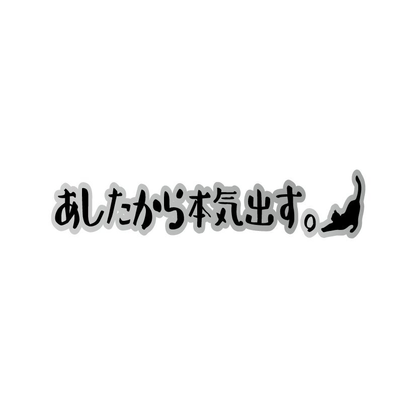 - (シルバー) ワンポイントステッカー『あしたから本気出す』1枚 ((黒文字)) 12cm にゃんこ 猫 CAT 可愛い 防水 耐水 雑貨