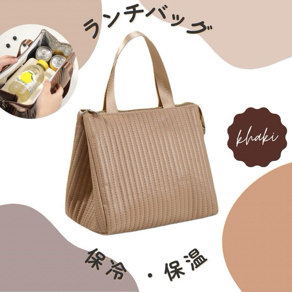 - ランチバッグ カーキ 保温 保冷 弁当袋 シンプル 保冷バッグ トート 大容量