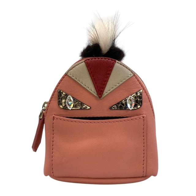 - FENDI フェンディ モンスター バグズ チャーム キーホルダー バッグチャーム 小物入れ アクセサリー ストーン レザー ピンク