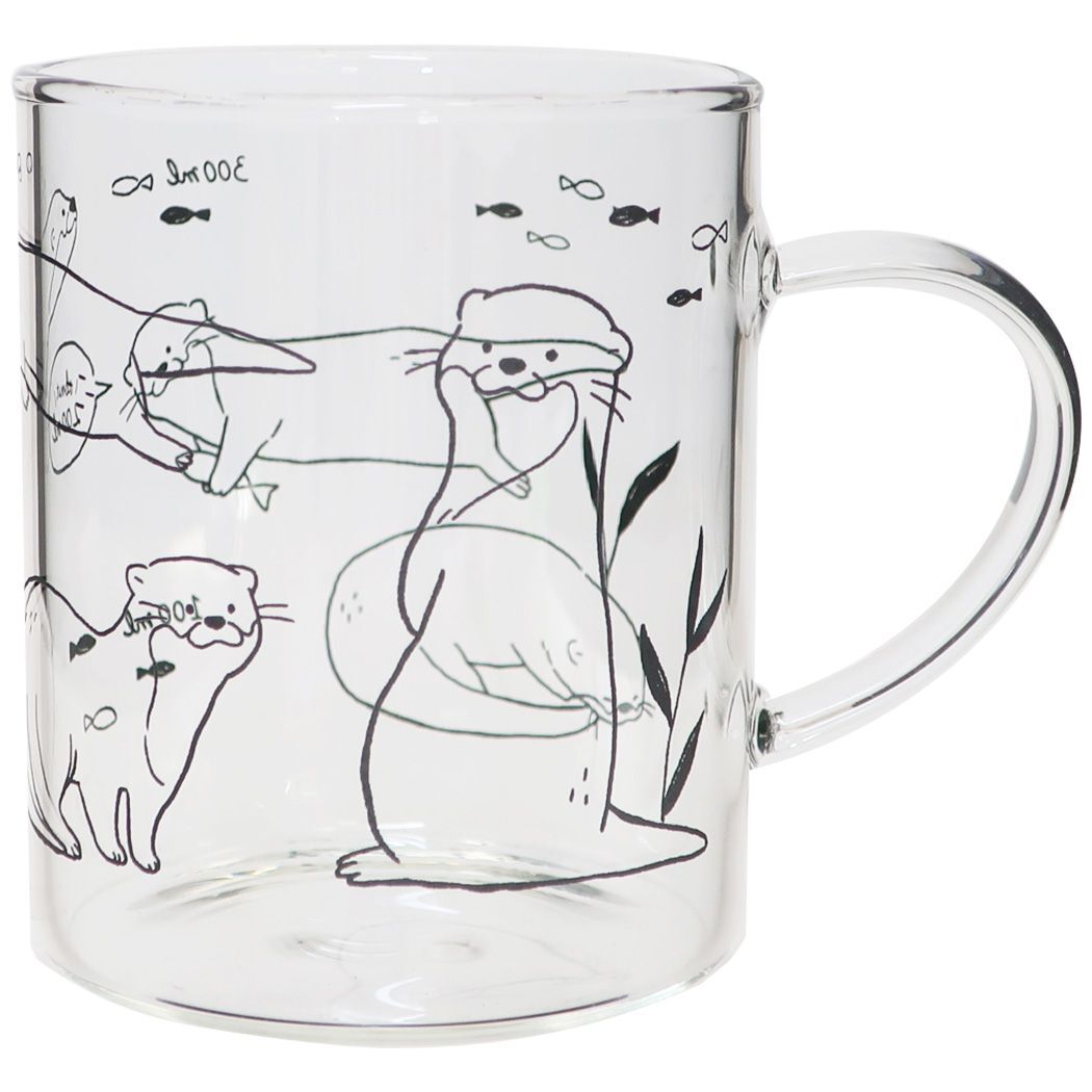 - マグカップ 耐熱グラスマグ 海アート カワウソ パインクリエイト
