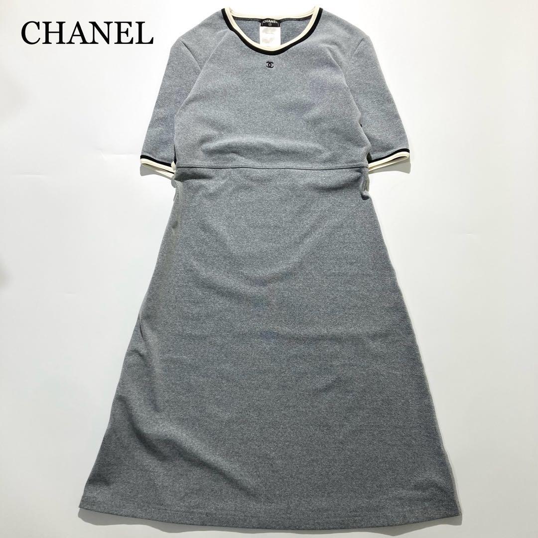 - 【未使用級】CHANEL ワンピース 半袖 ココマーク 刺繍 グレー 膝丈