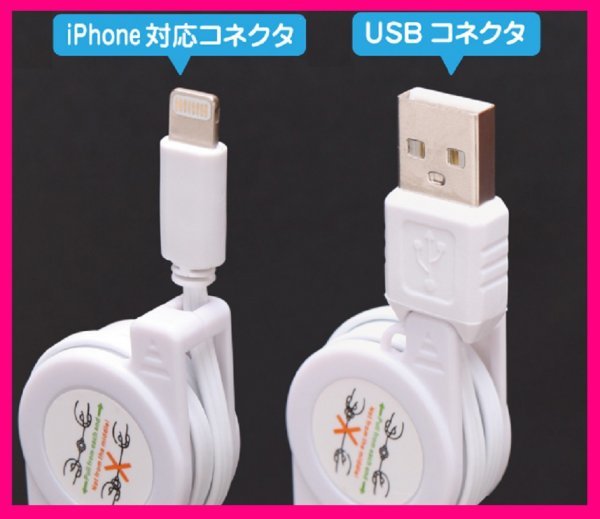 - 【送料無料:iPhone:USBケーブル:1本】★リール式:Lightning 充電ケーブル:スマホ:USB ケーブル 充電 充電器:ライトニング アイフォン