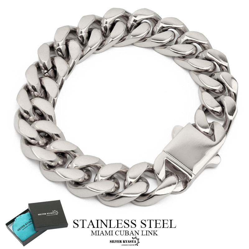 - (7inch(約18cm)) 幅14mm ステンレス 喜平チェーンブレスレット 4面カット シルバー系 メンズ 専用BOX付属