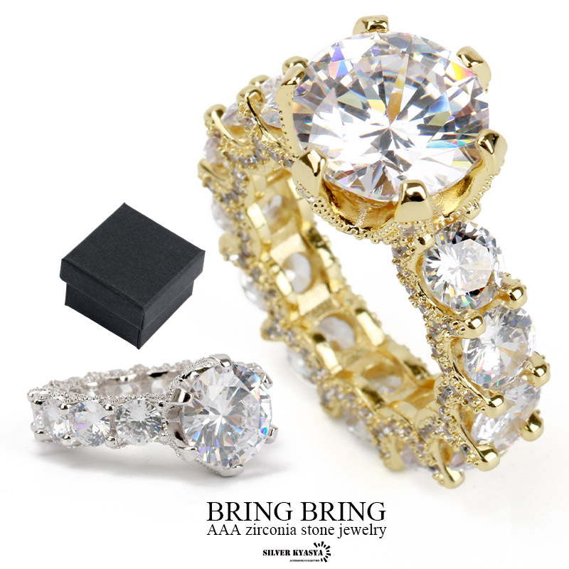 - (ゴールド、21号) パヴェリング CZ 18K GP 爪留め テニス 指輪 ゴールド シルバー ダンス 専用BOX付属