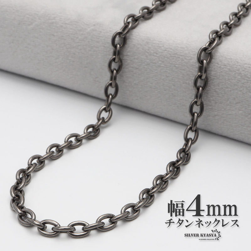 - (45cm) 純チタン ネックレスチェーン 幅4mm 細幅 あずきチェーンネックレス シルバー 日常使い 普段使いネックレス