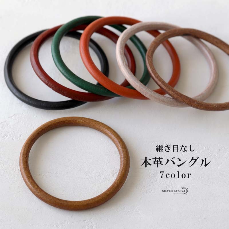 - (A グリーン) 継ぎ目なし 本革 バングル レザー ブレスレット 牛革 腕輪 プレーンバングル 太め