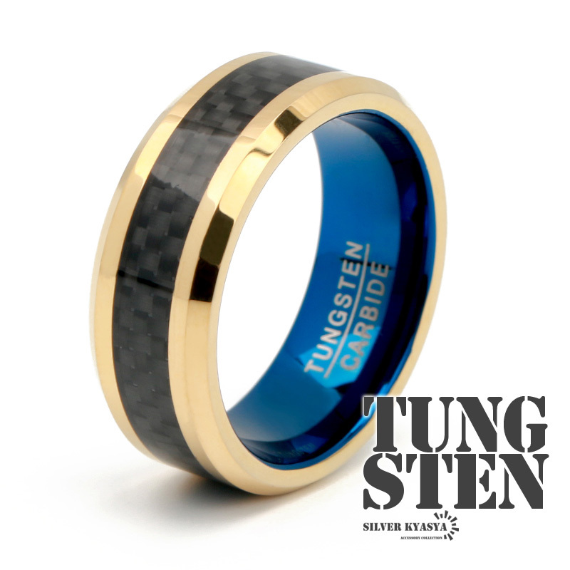 - (19号) タングステン カーボン デザイン 幅8mm エッジカット フラットバンド ごつめ BOX付属