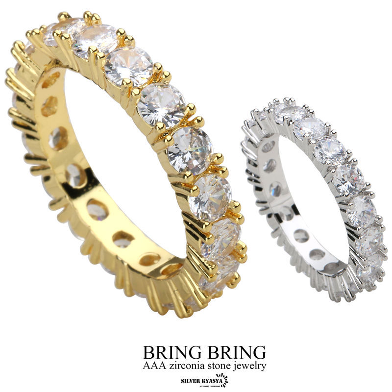 - (ゴールド、27号) ブリンブリン 指輪 テニスリング CZ 爪留め 大粒 18金 イエローゴールド シルバー