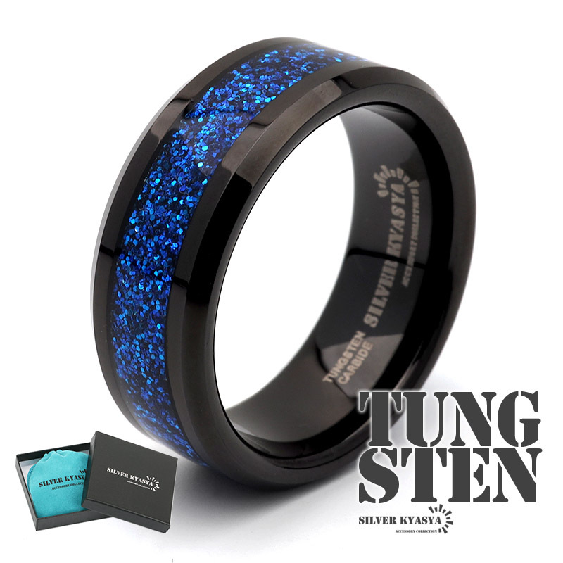- (14号) タングステン ブルーリング 指輪 リング ブルー 青 ブラック メタリック 金属アレルギー対応 専用BOX付属