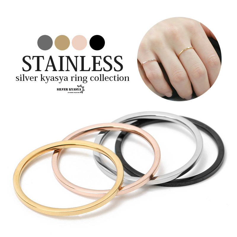 - (ローズゴールド、5号) 極細リング ステンレス シンプル 細身 ゴールド シルバー ブラック 重ね付け