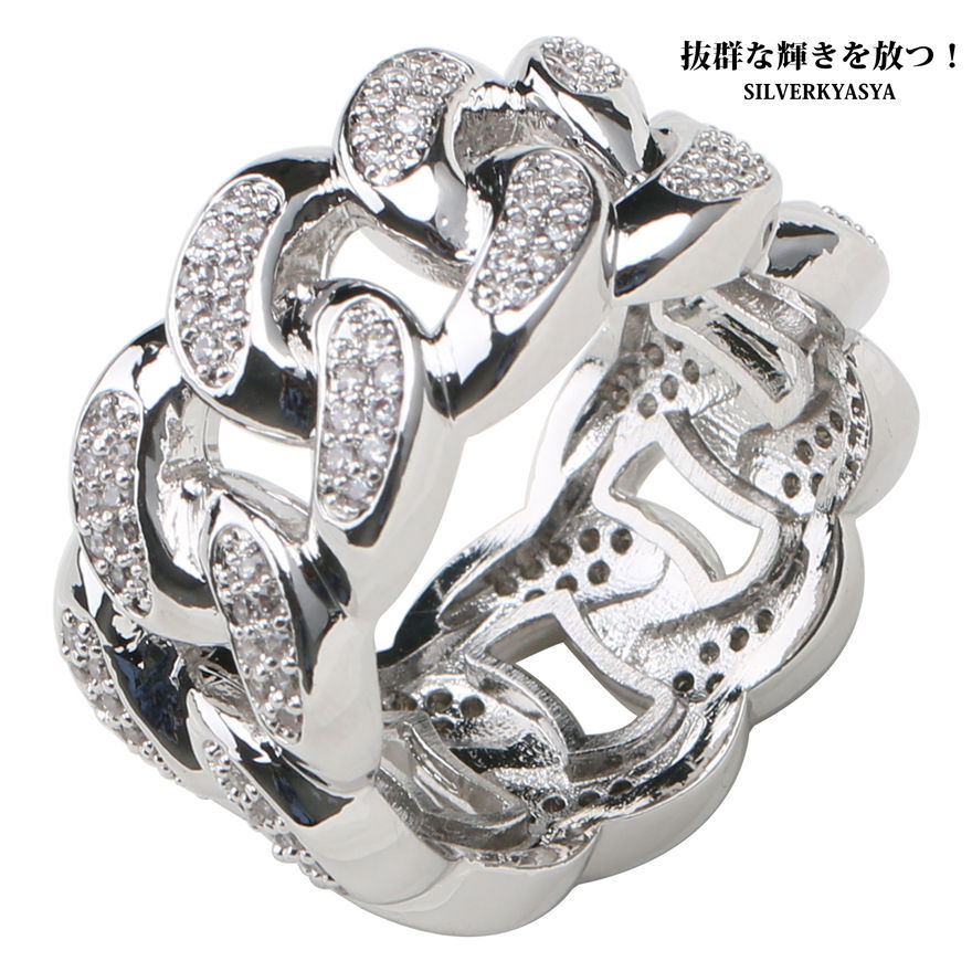 - (19号) 銀色 シルバー 喜平チェーン リング キヘイリング 指輪 チェーン デザイン パヴェリング CZ キラキラ