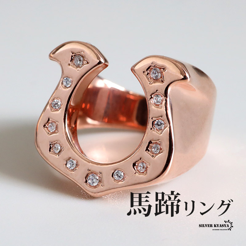 - (17号) 馬蹄リング ホースシューリング ローズゴールド ピンク ごつめ ピンキーリング スター 蹄鉄 指輪 太幅