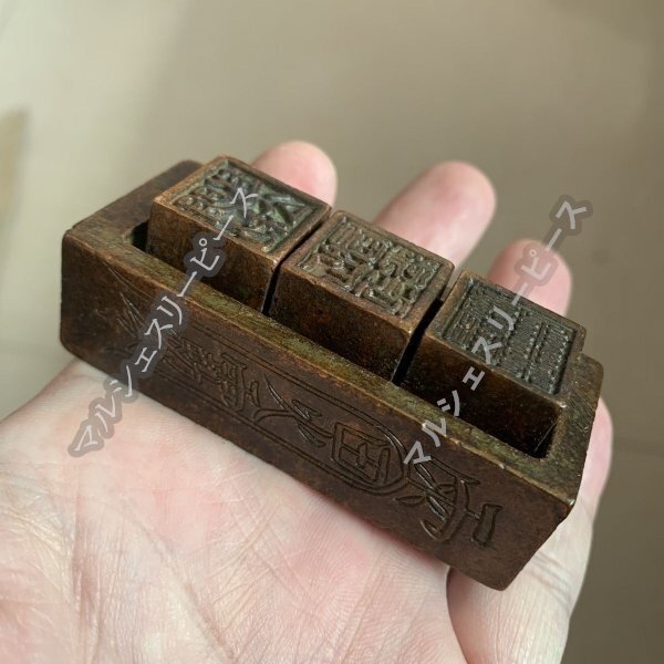 - 珍品 紫銅三合一組銅章 旧蔵 に印を押す銅製 面印章 印章 印鑑 極細工 銅器