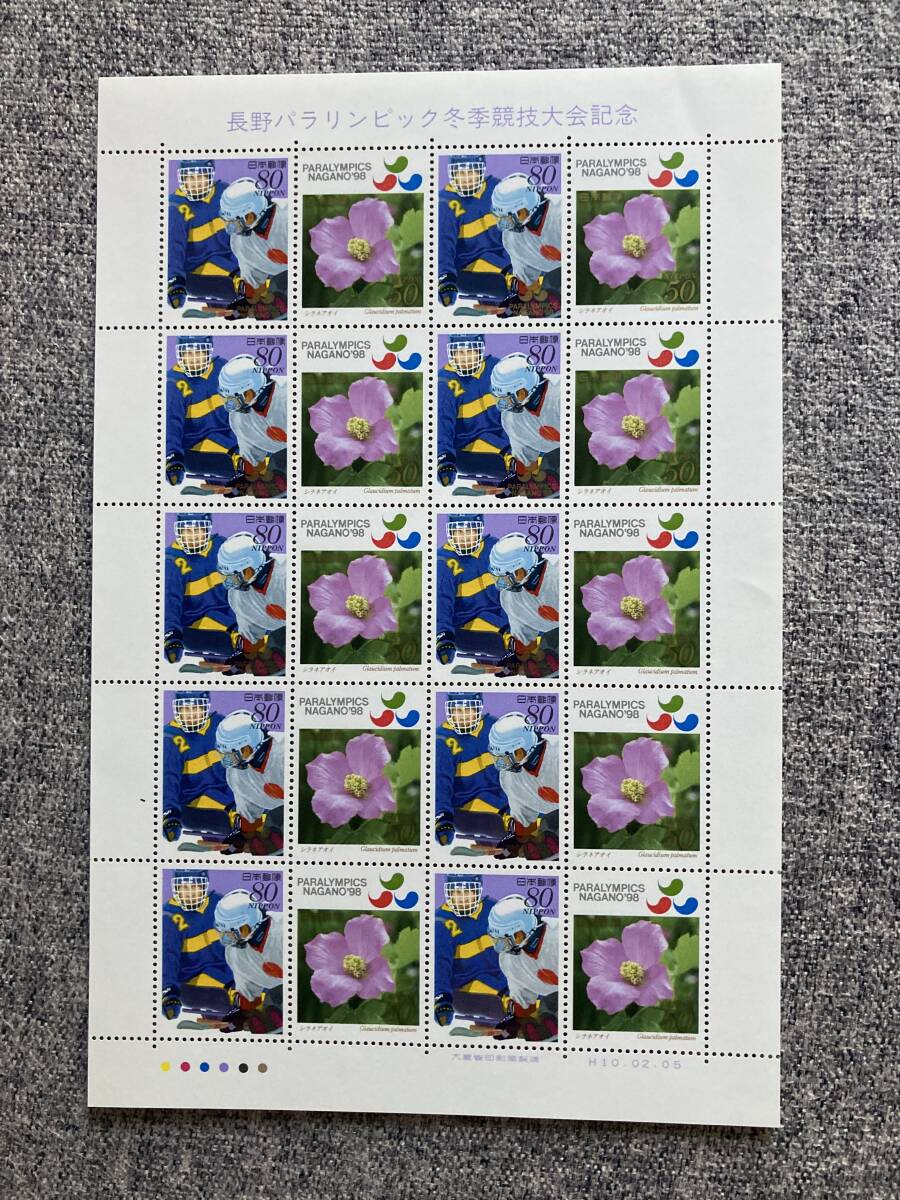> ★未使用 長野 パラリンピック 冬季競技大会記念 アイスレッジ ホッケー 白根葵 1998年 平成10年 切手シート 80円 10枚 50円10枚 日本郵便