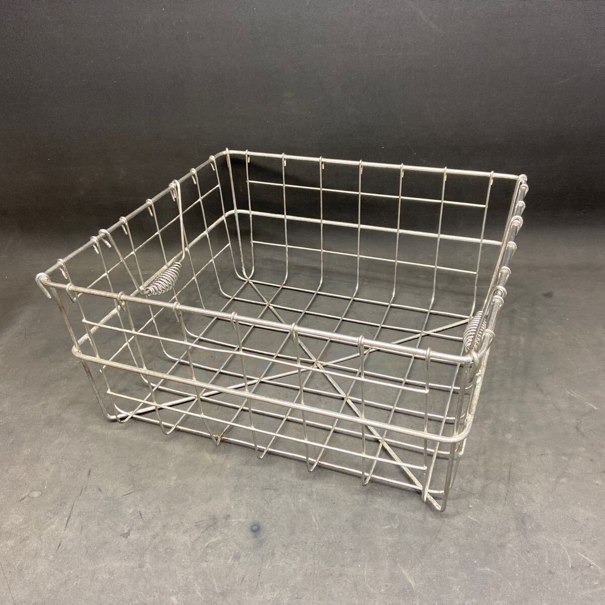 > G1792 【 給食カゴ 】 食器かご 水切りかご 収納かご 昭和レトロ 学校 給食 食堂 業務用 ワイヤーラック 39.5cm×36.5cm×高さ20cm 中古