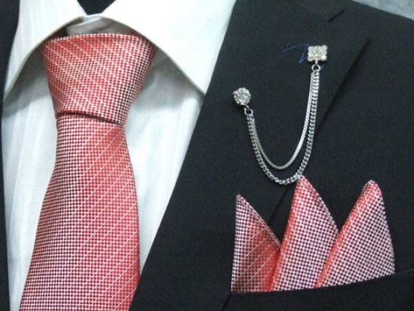 - ▼ラメ入りネクタイ ポケットチーフ付▼ロゼ▼シルク100%▼日本製▼結婚式▼メール便可 PTT-213