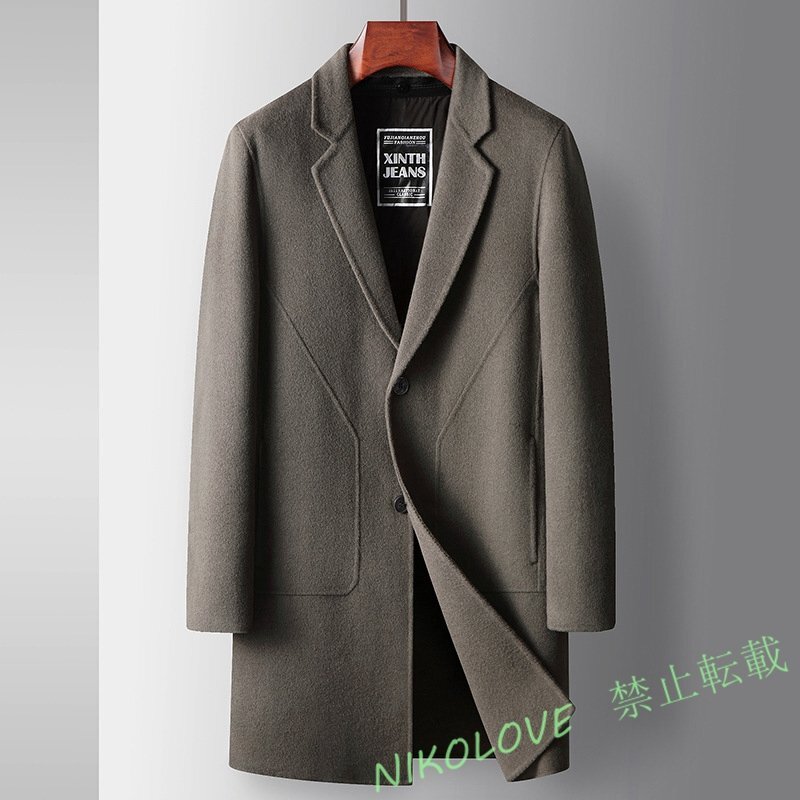 > ☆新品ビジネスコート ロングコート 高級 ウールコート セレブ WOOL 厚手 カシミヤコート 紳士スーツ チェスターコート オリーブ L LK362