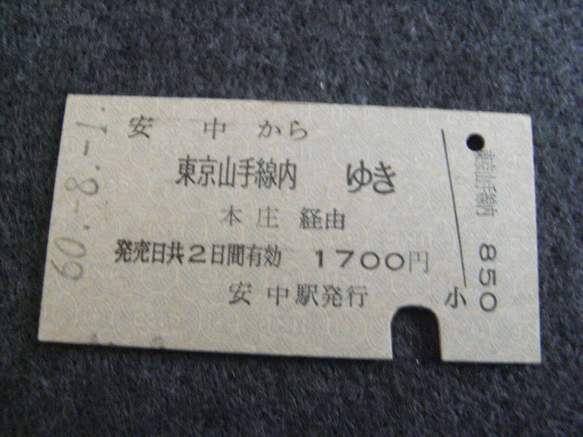 - 信越本線 安中から東京山手線内ゆき 本庄経由 昭和60年8月1日 安中駅発行