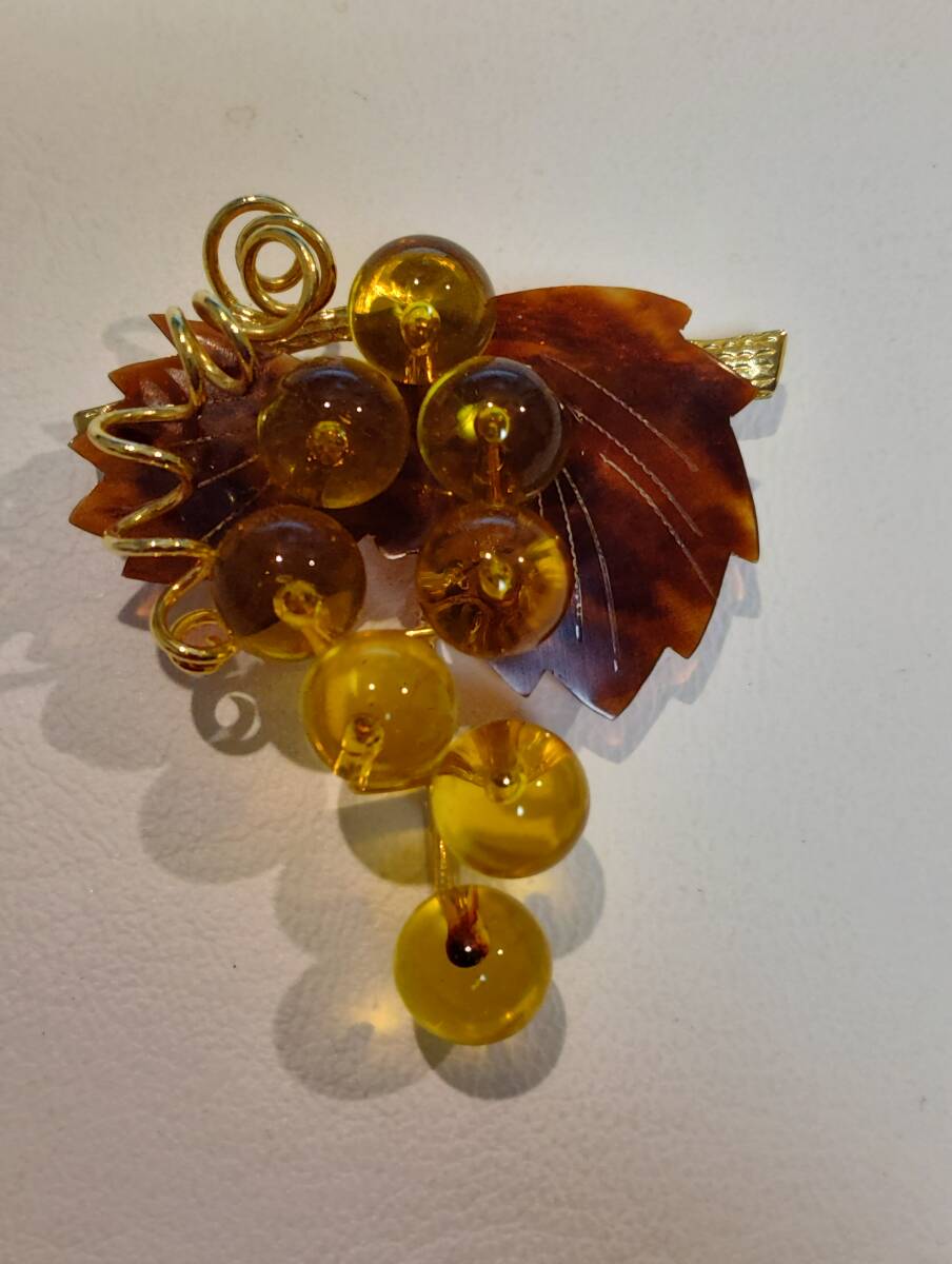 - べっ甲薄つくり・ブローチ&ペンダント兼用・ブドウ状アクセサリー