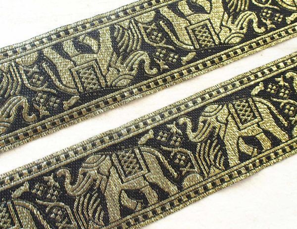 - 即決 ! 0.5mより インド刺繍リボン チロリアンテープ 黒 象☆民族衣装☆手芸 リボン