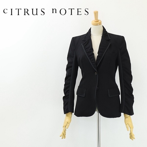 - ◆CITRUS NOTES シトラスノーツ ギャザーデザイン パイピング 2釦 ジャケット 黒 ブラック 36