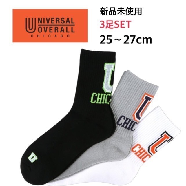 > 新品未使用 ユニバーサルオーバーオール 3P ソックス 25-27cm UNIVERSAL OVERALL 靴下 3足セット バッグロゴ