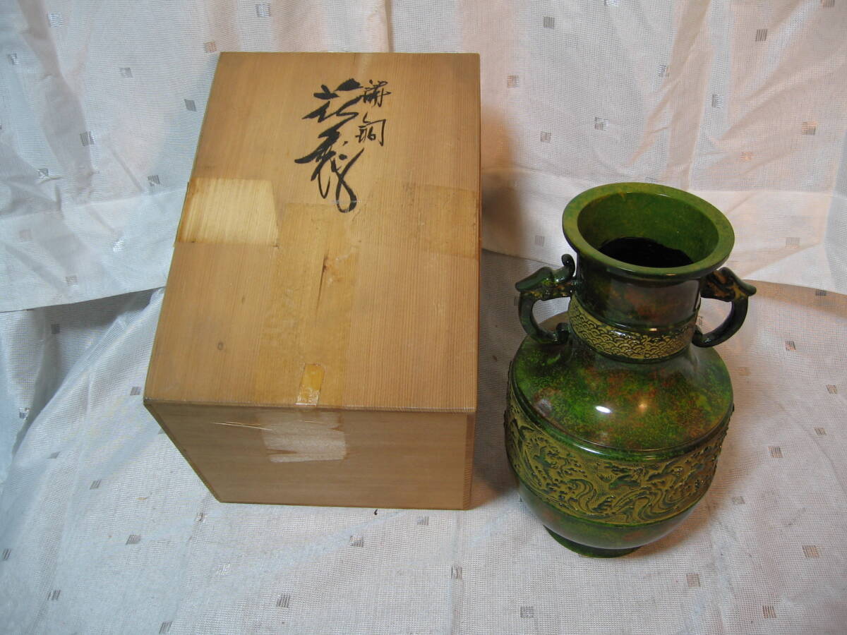 - 鋳銅☆花瓶☆剛章 作☆未使用品に近い☆木箱入り