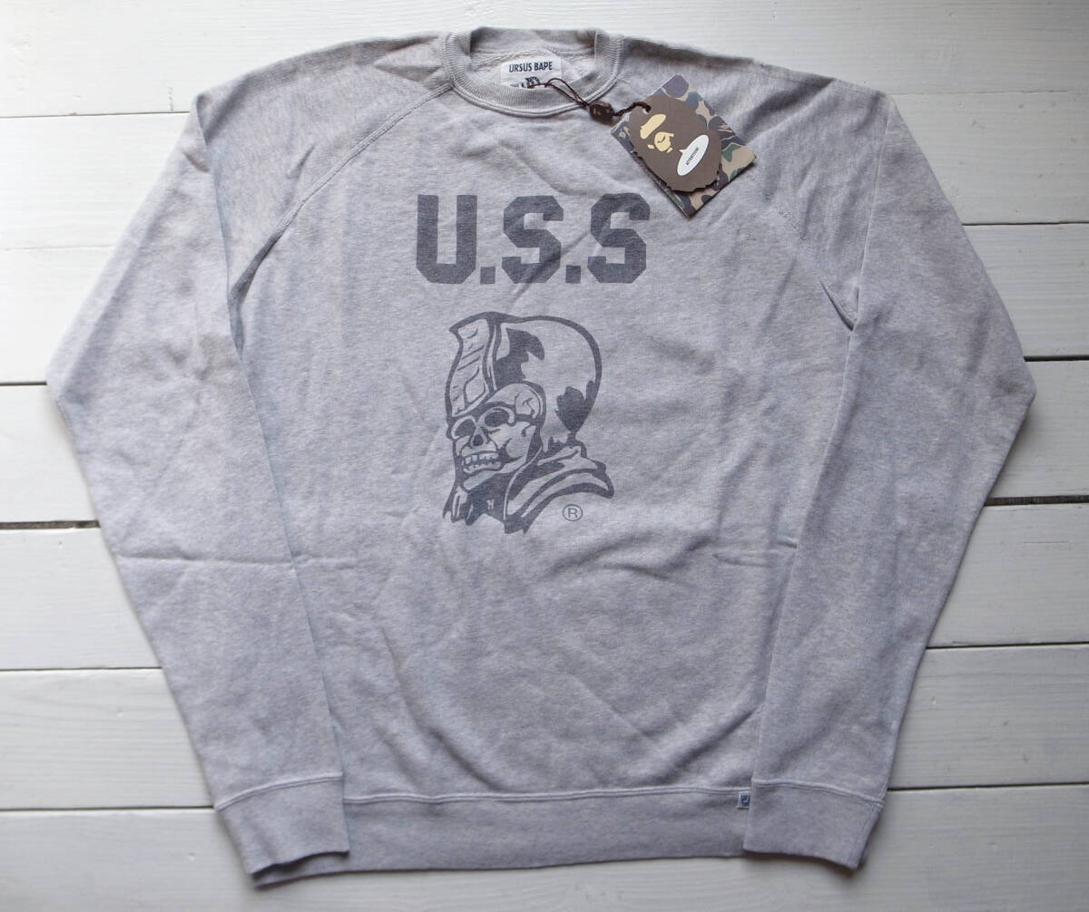 > 新品 A BATHING APE / U.S.S 染み込みプリント URSUS ビンテージ加工 スウェット グレー M 国内正規品