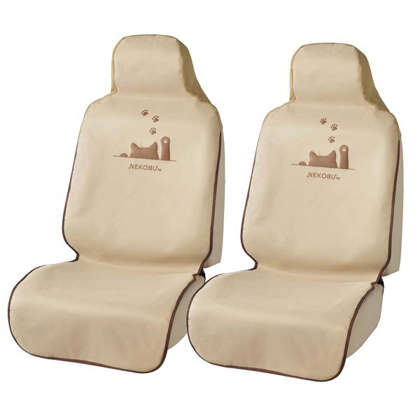 - ミラ ミラココア ミラトコット ムーブ 等 防水 シートカバー FN猫パンチ 軽自動車 普通車 汎用 フロント用 前席用 2枚セット ベージュ BE