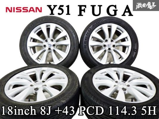 > 【 BS REGNO 245/50R18 タイヤ付 】 日産 純正 Y51 51 フーガ 前期 18インチ 8J +43 PCD 114.3 5H 5穴 ホイール 4本 棚48X